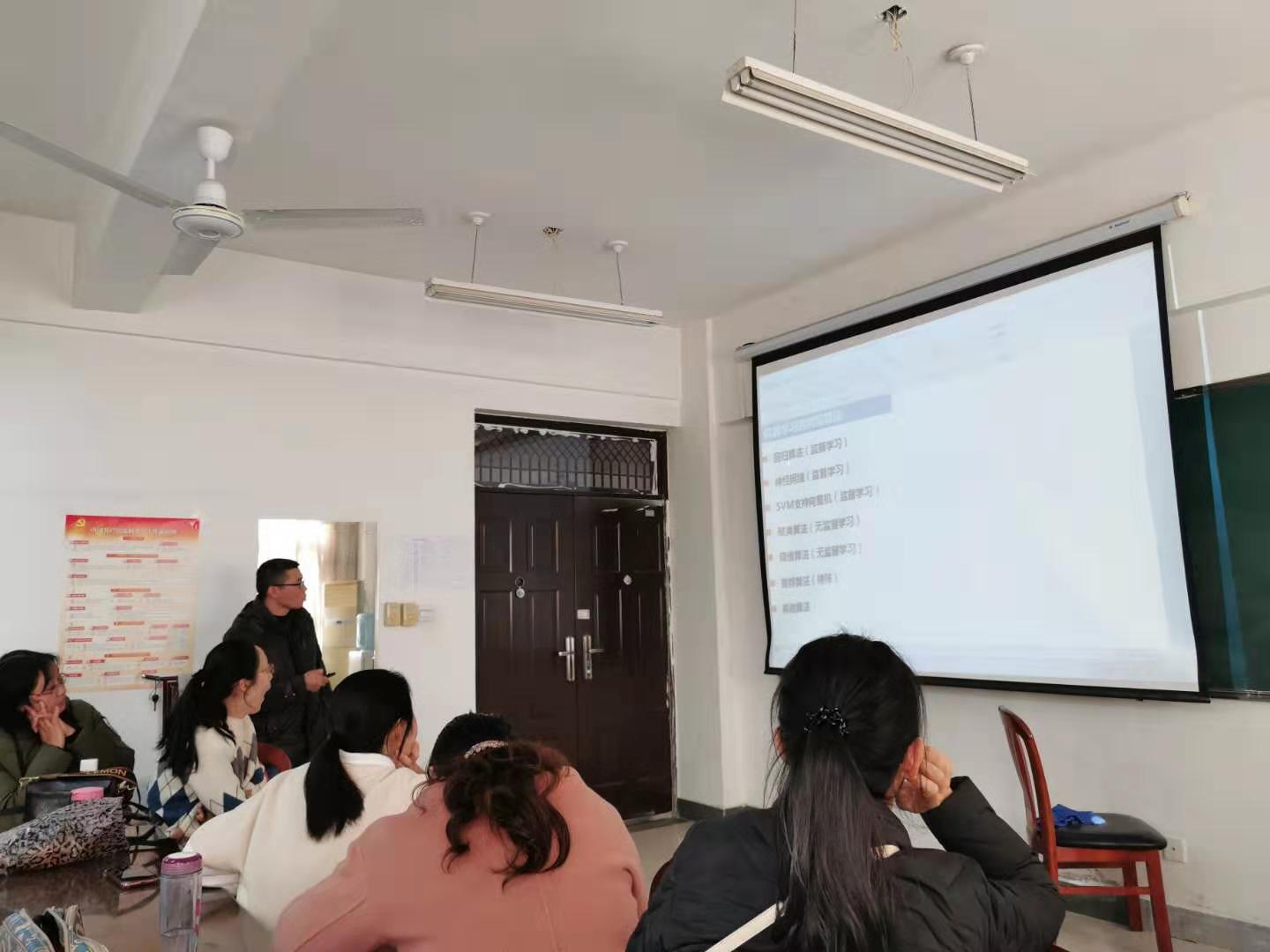 王法有博士的报告准备充分,内容充实,分别从历史、发展到应用前沿三个阶段,围绕大数据理论、机器学习、深度学习三大热门研究方向,分12个小块儿的主题向在做教师做了报告。详细的讲解吸引了在座教师与报告人之间的积极互动,更让大家全面解了这三大热门研究方向的应用前景与部分技术细节。