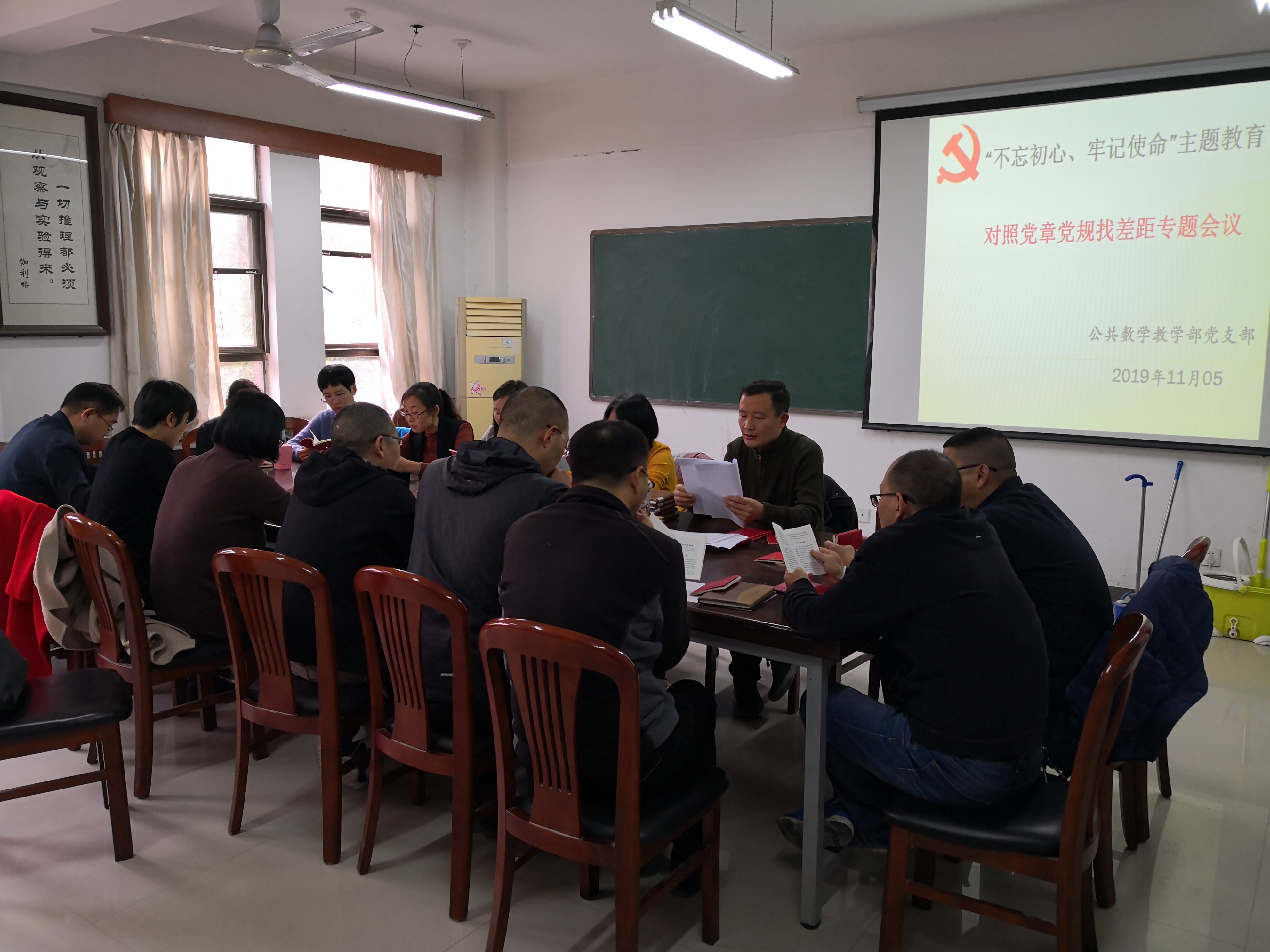 2019年11月5日下午,公共数学教学部党支部召开“不忘初心、牢记使命”主题教育对照党章党规找差距专题会议。本次专题会议由支部书记司增艳主持。